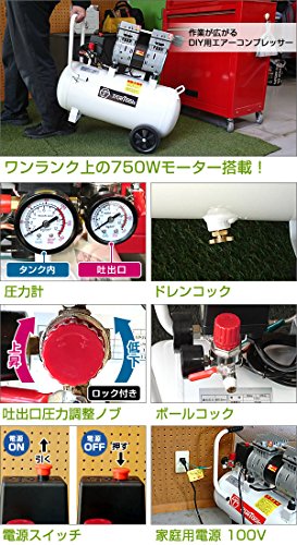 ・TrueTools 静音 オイルレス エアーコンプレッサー 30L
