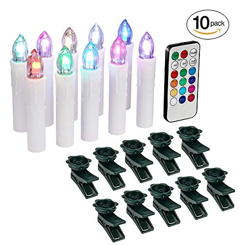 TurnRaise LED キャンドル ライト ろうそく 祝日 クリスマス 結婚式 誕生日 パーティング 飾り物 無煙 電池式 蝋燭 リモコン操作タイマー機能 クリップ搭載 10本セット (マルチカラー)