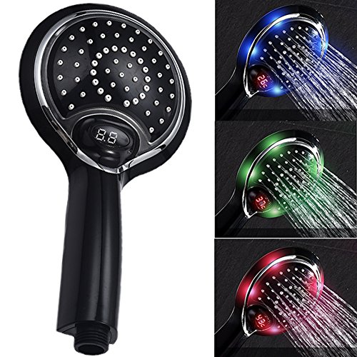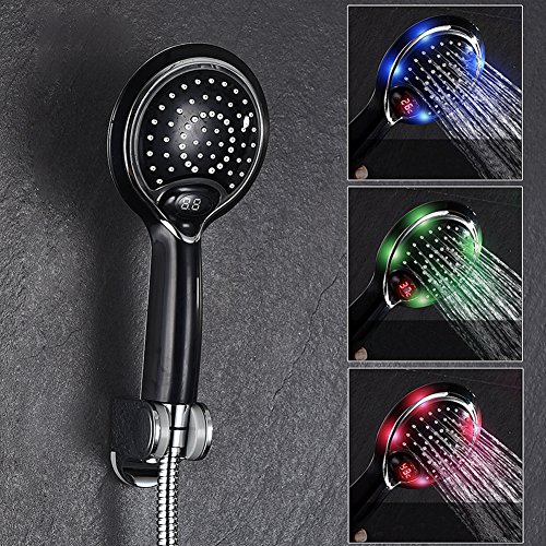 - 虹色3色の水流が楽しめるLEDシャワーヘッド:水流は温度によって三色に変化します、毎日のバスタイムがより楽しくなります。