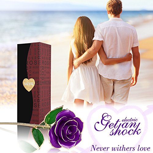U-kiss 造花 バラ 花束 母の日 むらさきローズフラワーギフト 24k純金箔のローズ 枯れない花 永遠なラブ ホワイトデー バレンタインデー 結婚祝い 母の日 お誕生日などにプレゼント