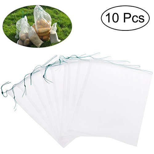 UEETEK メッシュ 袋 巾着 25*35cm 10枚入り ナイロン 水槽 フィルターネット 穀物 収納ネット 穴極細 多用途 ネット ホワイト
