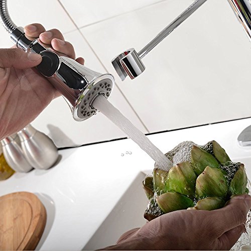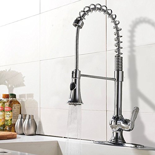 Ufaucet Modern High Arch Stainless Steel Plumbing Spiral Single Handle Commercial Pull Out Sprayer Kitchen Sink Faucet, Chrome Pull Down Kitchen Faucet [並行輸入品]