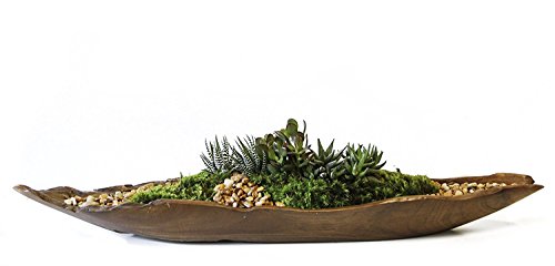 The handcrafted teak basin inspires daydreams of wandering through the shire, over the hills & through the forest, searching for the secret garden. Assorted live succulents Hand planted in Florida Creates modern harmony of color and texture