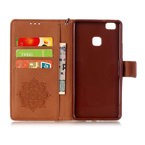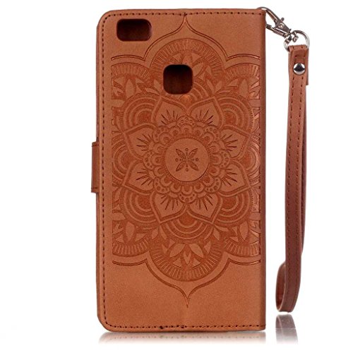 UNEXTATI Huawei P9 Lite ケース ダイヤモンド 手帳型ケース カバー カード収納 ストラップ 付き Huawei P9 Lite 用 Case Cover (ブラウン)