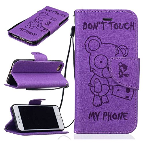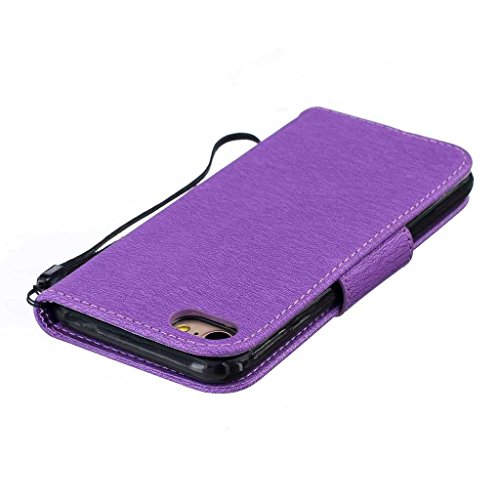 iPhone 7 ケース UNEXTATI 手帳型ケース 液晶保護 カバー カード収納 ストラップ 付き Apple iPhone7 用 高品質 PUレザー ケース Case Cover (P5 紫色)