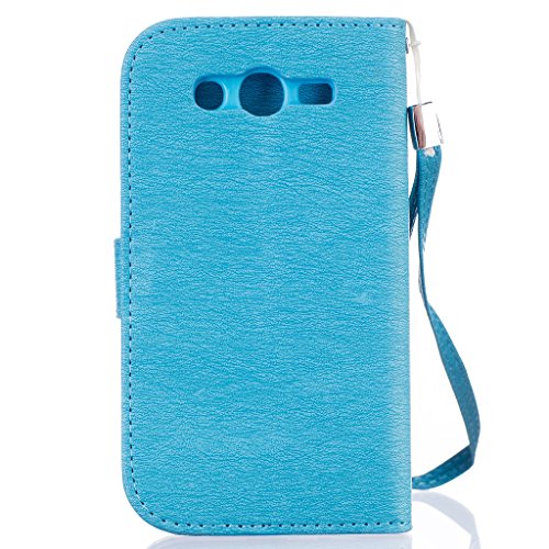 UNEXTATI Galaxy Grand Neo I9060 ケース 高品質 PUレザー 手帳型ケース 衝撃吸収 カバー カード収納 全面保護 Samsung Galaxy Grand Neo I9060 用 Case Cover (ブルー)