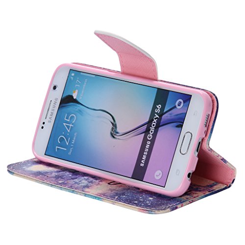 UNEXTATI Galaxy S6 Edge ケース 高級 合皮レザー 手帳型 ケース カバー カードホルダー スタンド マグネット開閉式 付き Samsung Galaxy S6 Edgeケース Case (P5 紫色)