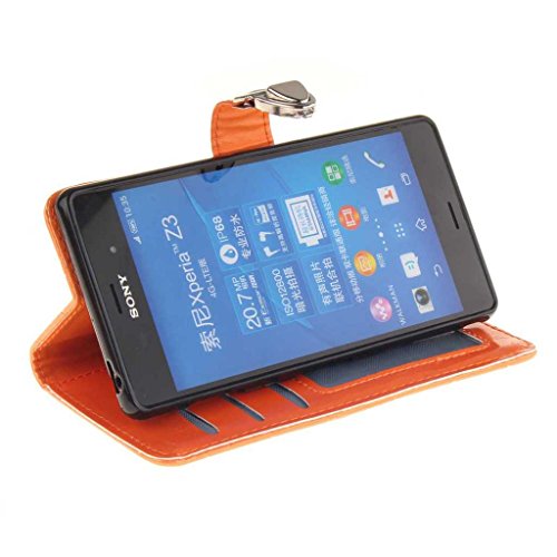 Sony Xperia Z3 ケース UNEXTATI 手帳型ケース 液晶保護 カバー カード収納 スタンド機能 付き Sony Xperia Z3 用 高品質 PUレザー ケース Case Cover (P5 オレンジ)