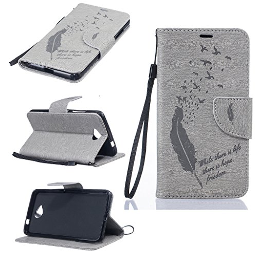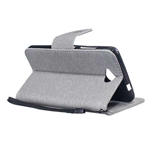 Microsoft Lumia 650 ケース UNEXTATI 高品質 PUレザー 手帳型 ケース 財布型 ウォレット型 衝撃吸収 保護カバー カード収納 ホルダー ストラップ付き 横開 スタンド機能 マグネット開閉式 シリコンカバー 液晶保護 落下防止 防塵 高級 合皮レザー Microsoft Lumia 650 用 Case Cover (P7 グレー)