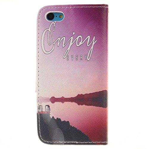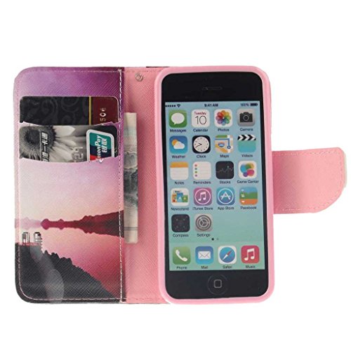 iPhone 5C ケース, UNEXTATI 手帳型ケース, Apple iPhone 5C ケース カバー, 高品質 PUレザー 手帳型 ウォレット型 財布型 保護カバー カード収納 スタンド機能 マグネット式 (P3 紫色)