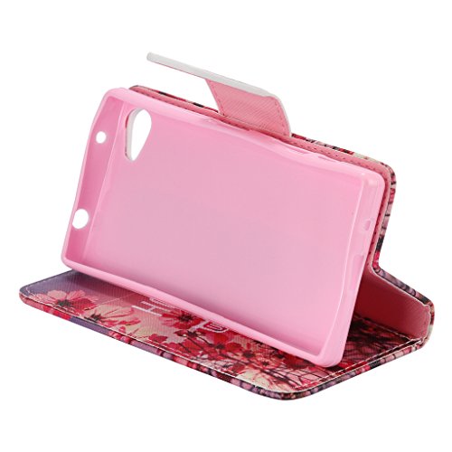 UNEXTATI Sony Xperia Z5 Compact (Mini) ケース 高級 合皮レザー 手帳型 ケース カバー カードホルダー スタンド マグネット開閉式 付き Sony Xperia Z5 Compact (Mini)ケース Case (P1 ピンク)