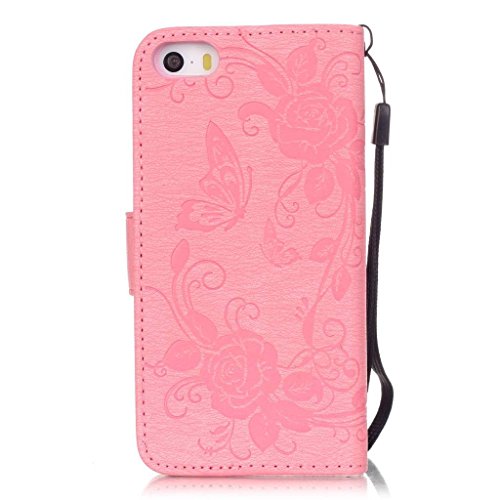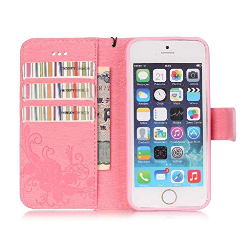UNEXTATI iPhone 5 / iPhone 5s ケース ダイヤモンド 手帳型ケース カバー カード収納 ストラップ 付き Apple iPhone5 / iPhone5s 用 Case Cover (ピンク #2)