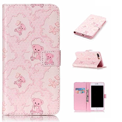 UNEXTATI iPhone 7 Plus 手帳型 ケース 高級PUレザー カード収納 ホルダー 付き 耐衝撃 全面保護 スタンド機能付き Apple iPhone7 Plus ケース カバー Case (P6 ピンク)