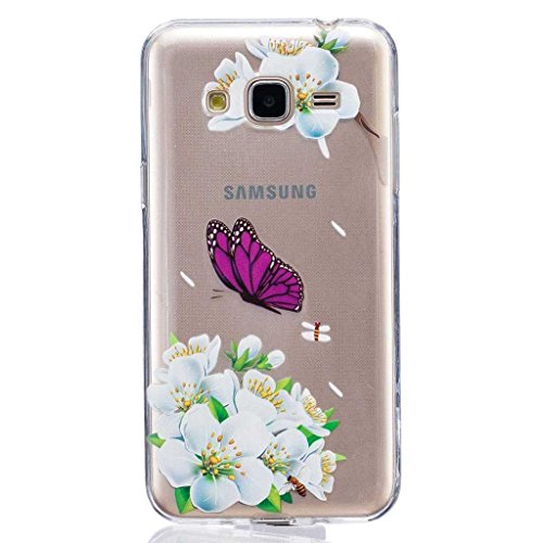 Samsung Galaxy J3 2016 ケース カバー, UNEXTATI 高品質 TPU 超薄型 柔軟 保護カバー ケース 液晶保護 脱着簡単 耐衝撃 軽量 Samsung Galaxy J3 2016 用 ケース Case (P8 バタフライ)