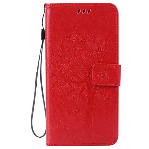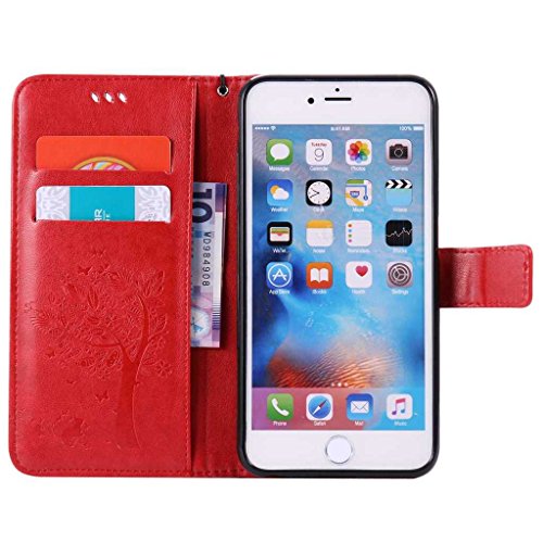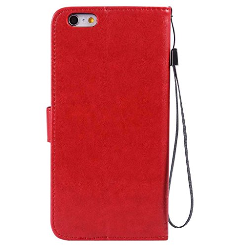 iPhone 6 Plus / iPhone 6S Plus ケース 手帳型ケース, UNEXTATI 高級 PUレザー 保護ケース 財布型 カバー 液晶保護 カード収納 スタンド機能 マグネット開閉式 ストラップ付き Apple iPhone 6 Plus / iPhone 6S Plus ケース 保護カバー (P6 レッド)