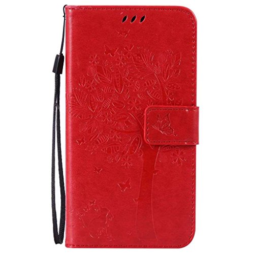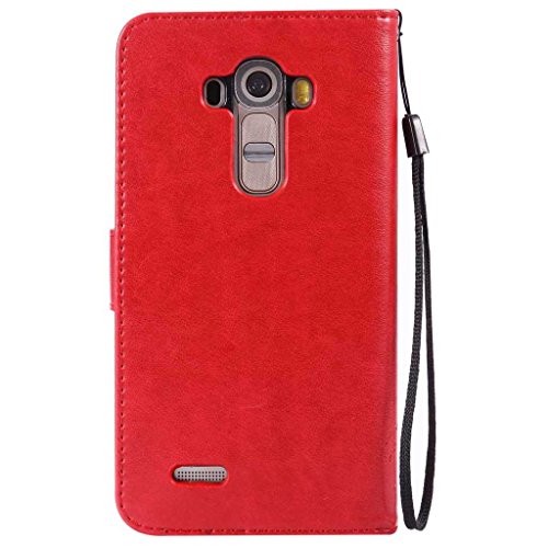 LG G4 ケース 手帳型ケース, UNEXTATI 高級 PUレザー 保護ケース 財布型 カバー 液晶保護 カード収納 スタンド機能 マグネット開閉式 ストラップ付き LG G4 ケース 保護カバー (P6 レッド)