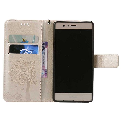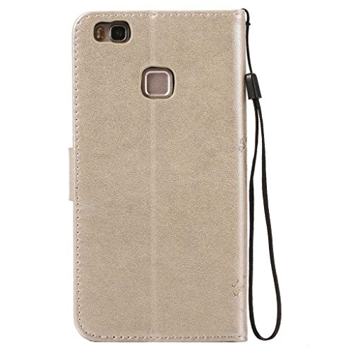 Huawei P9 Lite ケース 手帳型ケース, UNEXTATI 高級 PUレザー 保護ケース 財布型 カバー 液晶保護 カード収納 スタンド機能 マグネット開閉式 ストラップ付き Huawei P9 Lite ケース 保護カバー (P8 蝶)
