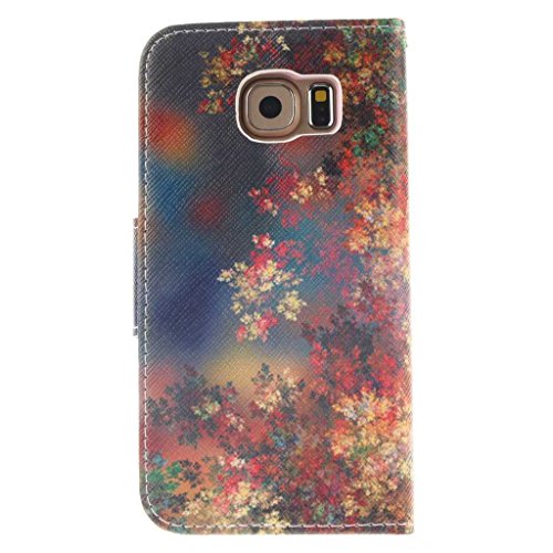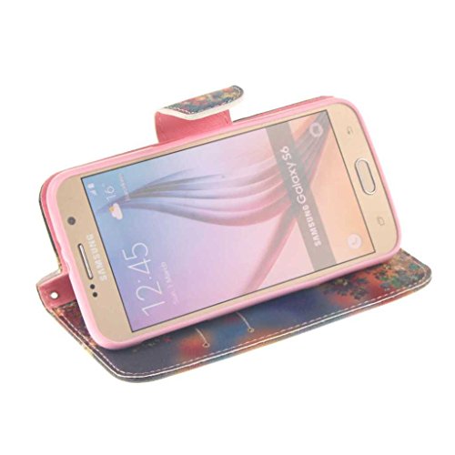 Samsung Galaxy S6 ケース, UNEXTATI 手帳型ケース, Samsung Galaxy S6 ケース カバー, 高品質 PUレザー 手帳型 ウォレット型 財布型 保護カバー カード収納 スタンド機能 マグネット式 (P9 木)
