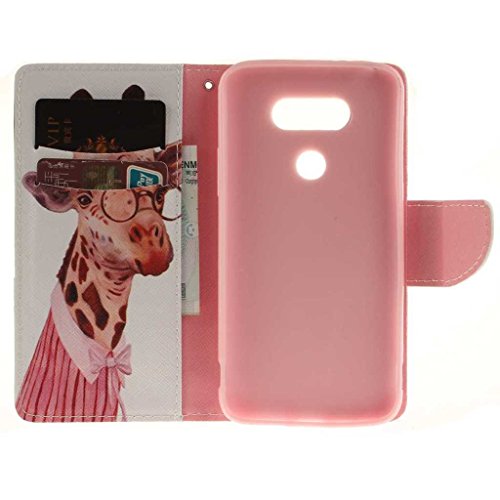 LG G5 ケース, UNEXTATI 手帳型ケース, LG G5 ケース カバー, 高品質 PUレザー 手帳型 ウォレット型 財布型 保護カバー カード収納 スタンド機能 マグネット式 (P6 キリン)