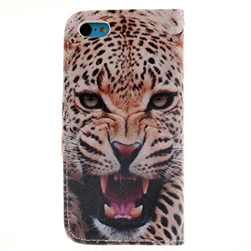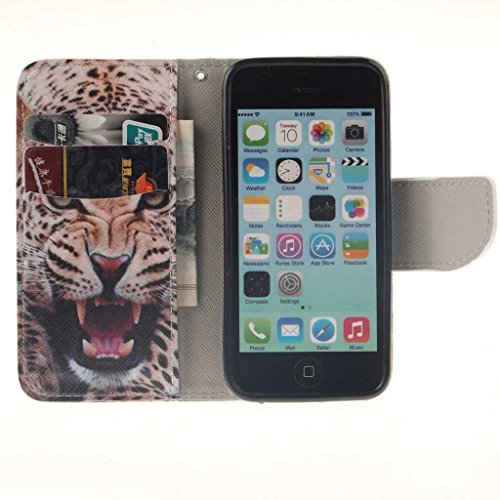 iPhone 5C ケース, UNEXTATI 手帳型ケース, Apple iPhone 5C ケース カバー, 高品質 PUレザー 手帳型 ウォレット型 財布型 保護カバー カード収納 スタンド機能 マグネット式 (P14 動物)