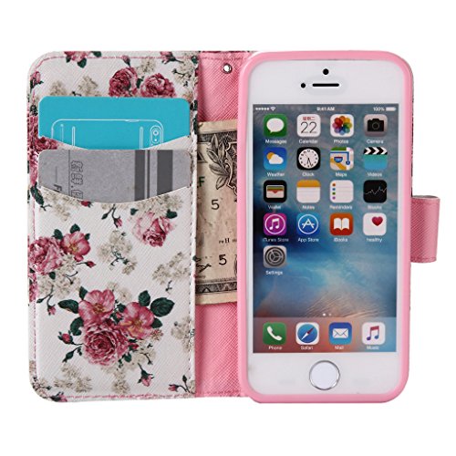 iPhone 5 / iPhone 5s ケース UNEXTATI 高品質 PUレザー 手帳型 ケース 財布型 ウォレット型 衝撃吸収 保護カバー カード収納 ホルダー 横開 スタンド機能 マグネット開閉式 シリコンカバー 液晶保護 落下防止 防塵 高級 合皮レザー Apple iPhone5 / iPhone5s 用 Case Cover (P3 ピンク)