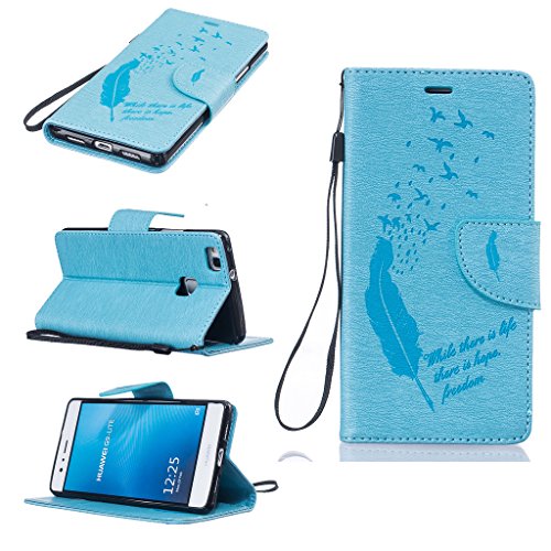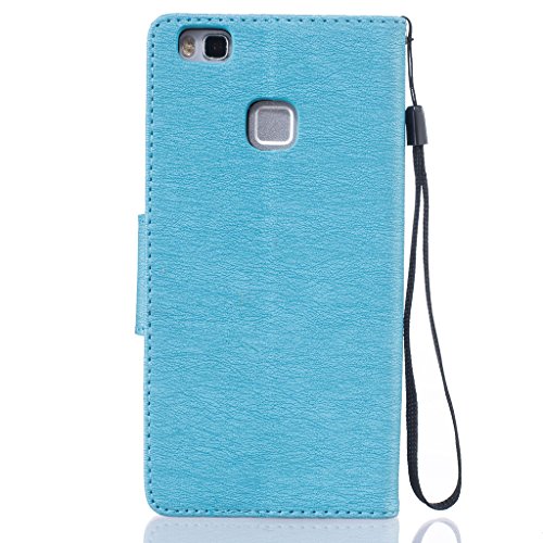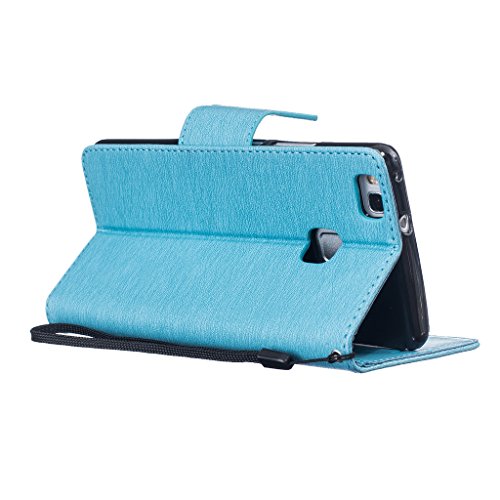 Huawei P9 Lite ケース UNEXTATI 高品質 PUレザー 手帳型 ケース 財布型 ウォレット型 衝撃吸収 保護カバー カード収納 ホルダー ストラップ付き 横開 スタンド機能 マグネット開閉式 シリコンカバー 液晶保護 落下防止 防塵 高級 合皮レザー Huawei P9 Lite 用 Case Cover (P4 ブルー)