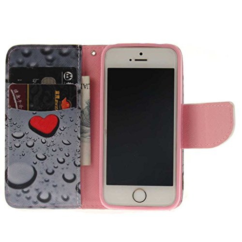 iPhone SE / iPhone 5 / 5s ケース, UNEXTATI 手帳型ケース, Apple iPhoneSE / iPhone5 / 5s ケース カバー, 高品質 PUレザー 手帳型 ウォレット型 財布型 保護カバー カード収納 スタンド機能 マグネット式 (P4 グレー)