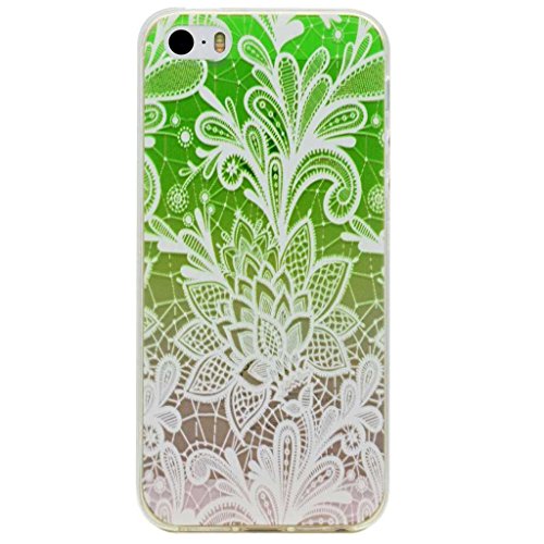iPhone SE / iPhone 5 / 5s ケース カバー, UNEXTATI 高品質 TPU 超薄型 柔軟 保護カバー ケース 液晶保護 脱着簡単 耐衝撃 軽量 Apple iPhone SE / iPhone 5 / 5s 用 ケース Case (P6 グリーン)