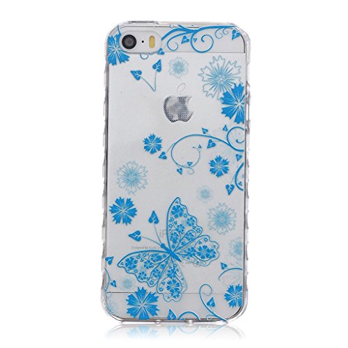 UNEXTATI iPhone SE 用 ケース 耐衝撃 高品質 TPU ハード カバー 超薄型ケース 全面保護 脱着簡単 クリア 透明 Apple iPhoneSEカバー Cover (ブルー, P2)