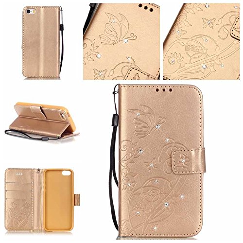 iPhone SE / iPhone 5 / 5s ケース, UNEXTATI 手帳型ケース Apple iPhone SE / iPhone 5 / 5s ケース カバー 高品質 PUレザー 手帳型 ウォレット型 財布型 液晶保護 カード収納 スタンド機能 マグネット式 ダイヤモンド (P6 蝶)