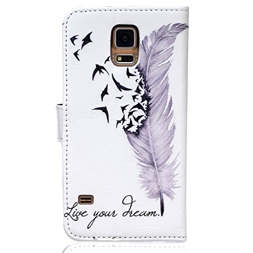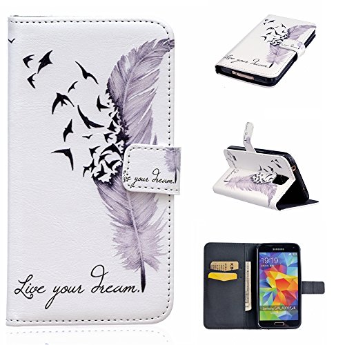 UNEXTATI Galaxy S5 ケース 手帳型ケース 高級PUレザー カード収納 ホルダー 付き 耐衝撃 全面保護 スタンド機能付き Galaxy S5ケース I9600ケース カバー Case (P4, ホワイト)