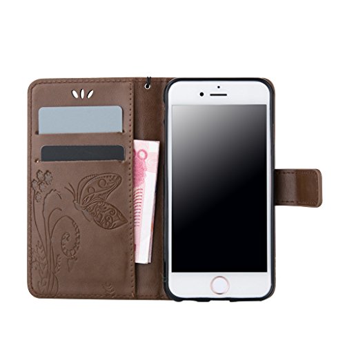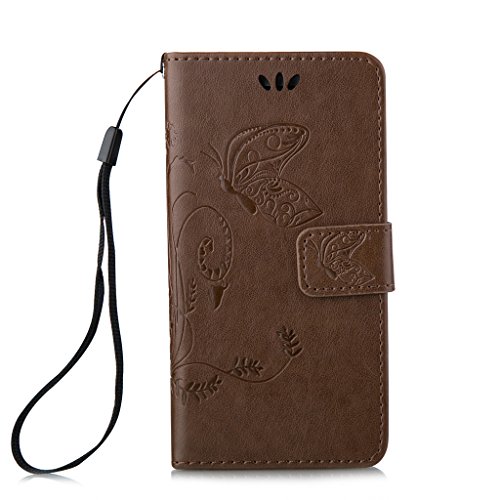 UNEXTATI iPhone SE ケース 手帳型 保護 ケース 高品質 PU レザー ストラップ付き カード収納ケース カバー 耐衝撃 スタンド機能 付き Apple iPhone SE ケース Case (P5 ブラウン)