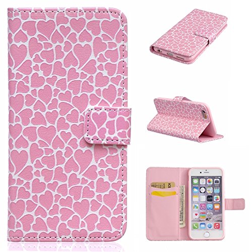 UNEXTATI iPhone 6 Plus / iPhone 6s Plus 手帳型 ケース 高級PUレザー カード収納 ホルダー 付き 耐衝撃 全面保護 スタンド機能付き Apple iPhone6 Plusケース iPhone6s Plusケース カバー Case (P8, ピンク)