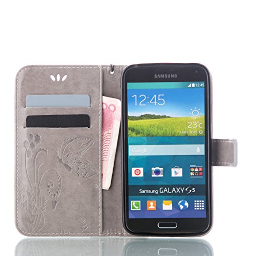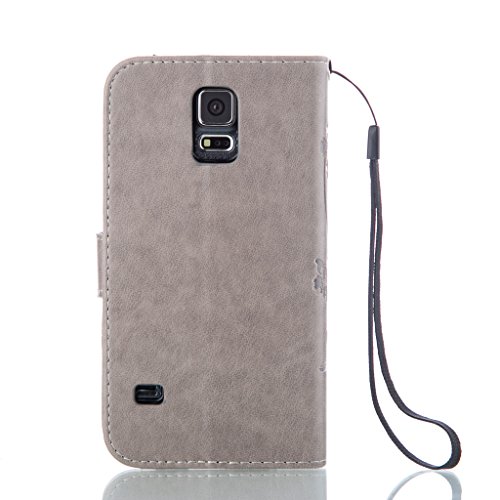 UNEXTATI Galaxy S5 ケース 手帳型 保護 ケース 高品質 PU レザー ストラップ付き カード収納ケース カバー 耐衝撃 スタンド機能 付き Samsung Galaxy S5 ケース Case (P7 グレー)