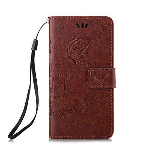 UNEXTATI iPhone 5 / iPhone 5S ケース 手帳型 保護 ケース 高品質 PU レザー ストラップ付き カード収納ケース カバー 耐衝撃 スタンド機能 付き Apple iPhone5ケース iPhone5sケース Case (P1 ブラウン)