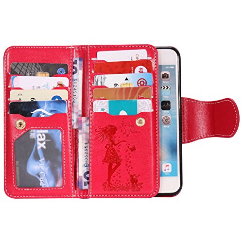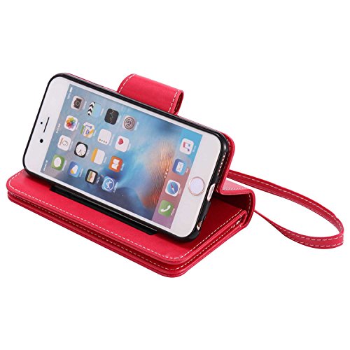 iPhone6 iPhone6s ケース カード収納 手帳型 ウォレット型 スタンド機能 ケース ストラップ付き 落下防止 マグネット開閉式 財布型 カバー iPhone 6 iPhone 6s ケース (P6 レッド)