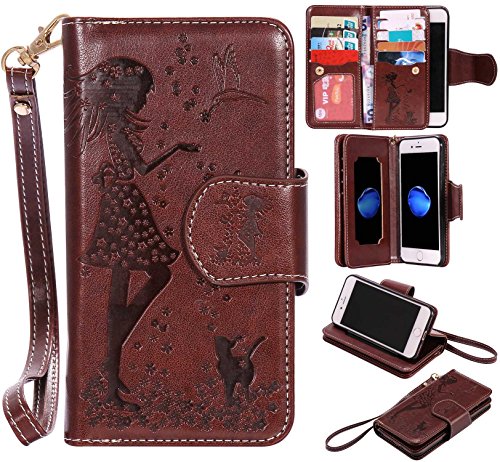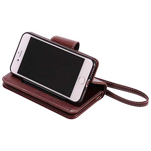 iPhone7 ケース カード収納 手帳型 ウォレット型 スタンド機能 ケース ストラップ付き 落下防止 マグネット開閉式 財布型 カバー iPhone 7 ケース (P4 ブラウン)