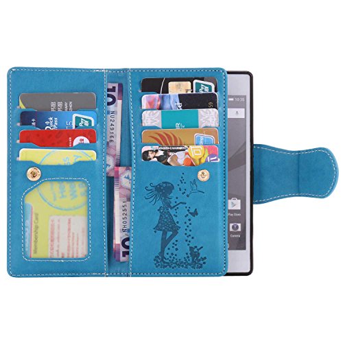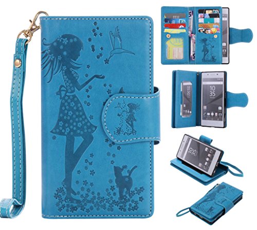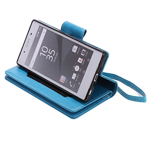 Sony Xperia Z5 ケース カード収納 手帳型 ウォレット型 スタンド機能 ケース ストラップ付き 落下防止 マグネット開閉式 財布型 カバー Sony Xperia Z5 ケース (P5 ブルー)