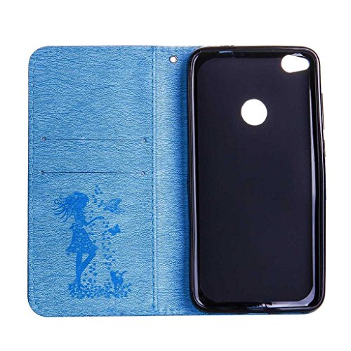 Huawei P8 Lite 2017 ケース マグネット式 手帳型 耐衝撃 保護ケース スタンド機能付き 防塵 財布型 プロテクター Huawei P8 Lite 2017 カバー (P2 ブルー)