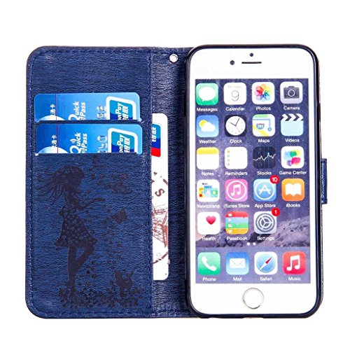 iPhone 6 Plus iPhone 6s Plus ケース マグネット式 手帳型 耐衝撃 保護ケース スタンド機能付き 防塵 財布型 プロテクター iPhone6 Plus iPhone6s Plus カバー (P6 ネイビーブルー)