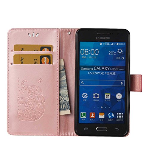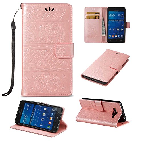 Samsung Galaxy Grand Prime 手帳型 ケース カバー マグネット スタンド機能 液晶保護 防塵 ケース 耐衝撃 脱着簡単 カードポケット 高品質 カバー ウォレット型 Samsung Galaxy Grand Prime ケース (P1 ローズゴールド)