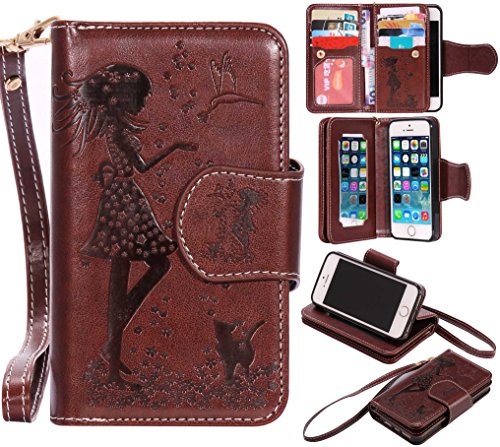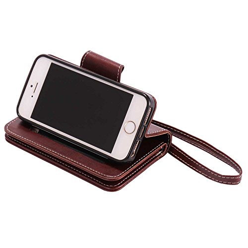 iPhoneSE 5 5s ケース カード収納 手帳型 ウォレット型 スタンド機能 ケース ストラップ付き 落下防止 マグネット開閉式 財布型 カバー iPhone SE iPhone 5 5s ケース (P4 ブラウン)