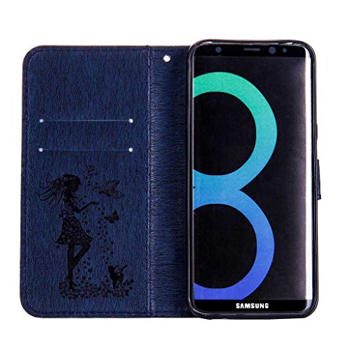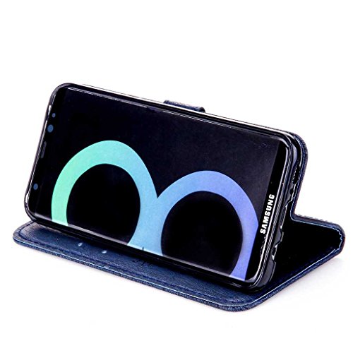 Samsung Galaxy S8 Plus ケース マグネット式 手帳型 耐衝撃 保護ケース スタンド機能付き 防塵 財布型 プロテクター Samsung Galaxy S8 Plus カバー (P6 ネイビーブルー)