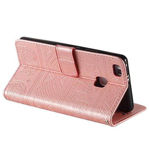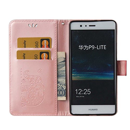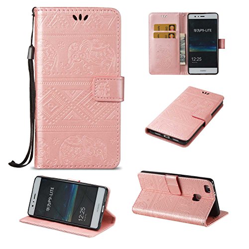 Huawei P9 Lite 手帳型 ケース カバー マグネット スタンド機能 液晶保護 防塵 ケース 耐衝撃 脱着簡単 カードポケット 高品質 カバー ウォレット型 Huawei P9 Lite ケース (P1 ローズゴールド)