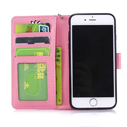 iPhone 8 Plus ケース UNEXTATI Apple iPhone8 Plus 手帳型ケース カバー 液晶保護 カード収納 スタンド機能 マグネット開閉式 ストラップ付き (P8 ピンク)