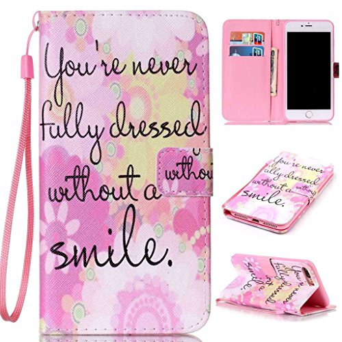 iPhone 8 Plus ケース UNEXTATI 保護カバー 手帳型 iPhone8 Plus 対応 ストラップ付き カード収納付 落下防止 衝撃吸収 財布型 ケース 携帯電話カバー (P6 ピンク)