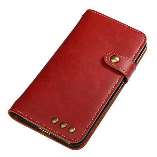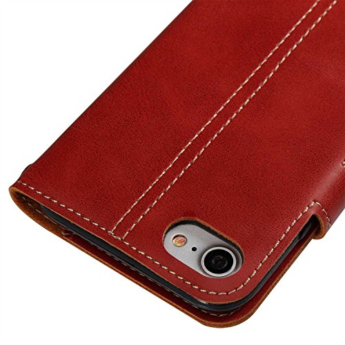 iPhone 8 ケース UNEXTATI 手帳型 薄型 柔軟型 耐久 擦り傷防止 落下防止 ウォレット型 ケース カード収納付き iPhone8 対応 (P4 レッド)