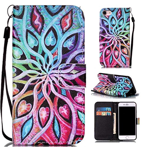 iPhone 8 ケース UNEXTATI 保護カバー 手帳型 iPhone8 対応 ストラップ付き カード収納付 落下防止 衝撃吸収 財布型 ケース 携帯電話カバー (P3 マルチカラー)
