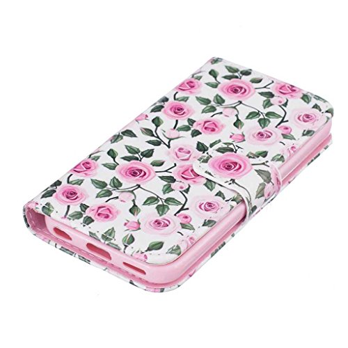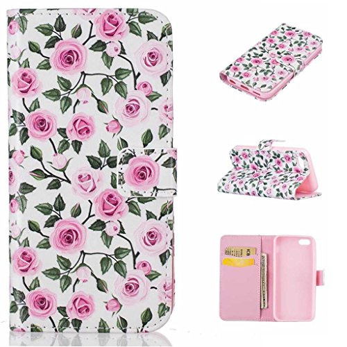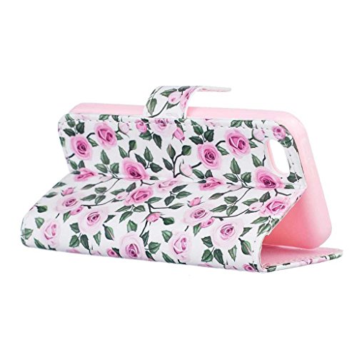 iPhone5C ケース UNEXTATI 手帳型 保護カバー 高品質 PUレザー 全面保護 防塵 カード収納 マグネット開閉式 軽量 財布型 iPhone 5C ケース (P7 バラ)
