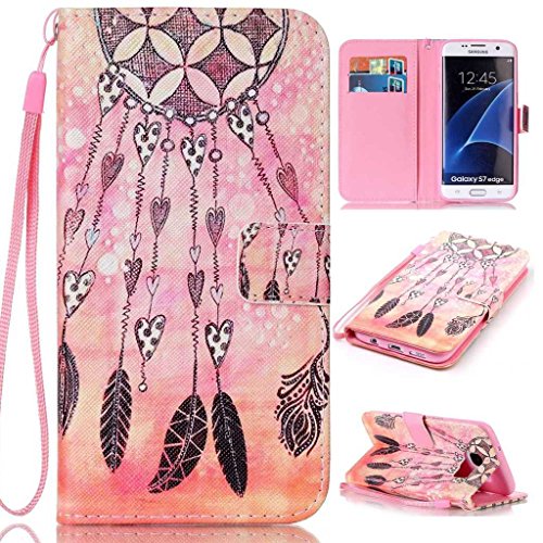 Samsung Galaxy S7 Edge ケース UNEXTATI 保護カバー 手帳型 Samsung Galaxy S7 Edge 対応 ストラップ付き カード収納付 落下防止 衝撃吸収 財布型 ケース 携帯電話カバー (P10 ピンク)